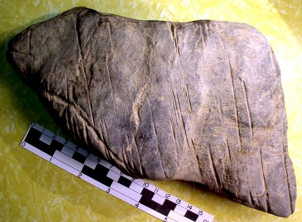 perpendicularly incised lines, shown refitted into the larger rock from which it was cut.